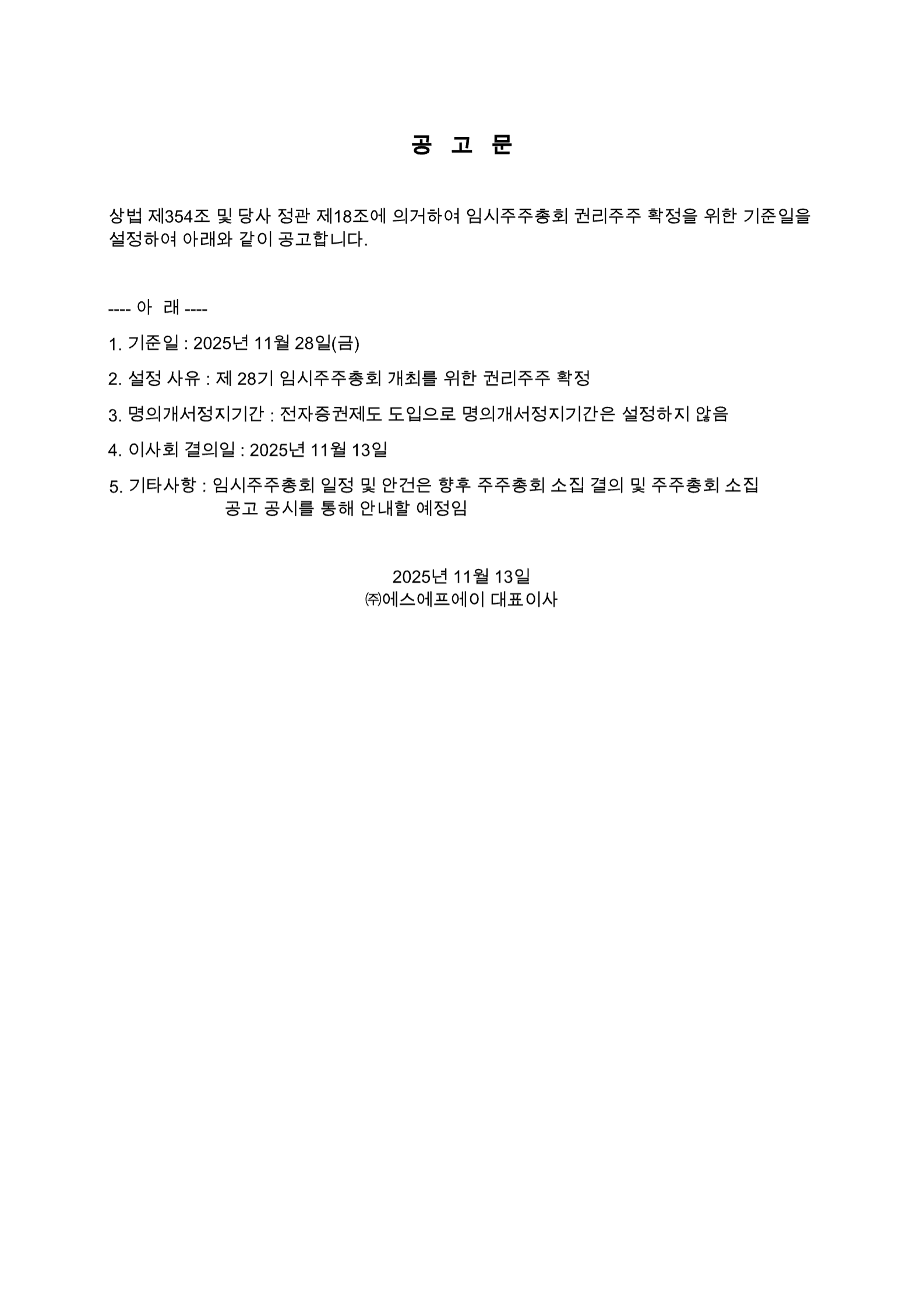 권리주주 확정을 위한 기준일 설정