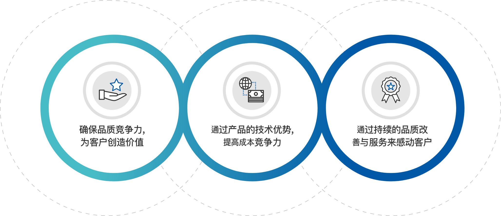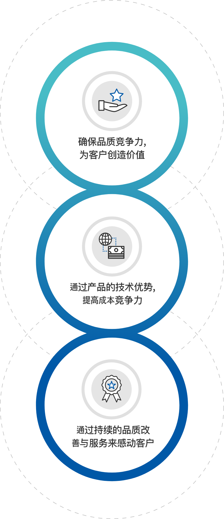基于技术、诚实、信义来满足客户,以创新与最佳的挑战来飞跃并尽到社会责任。