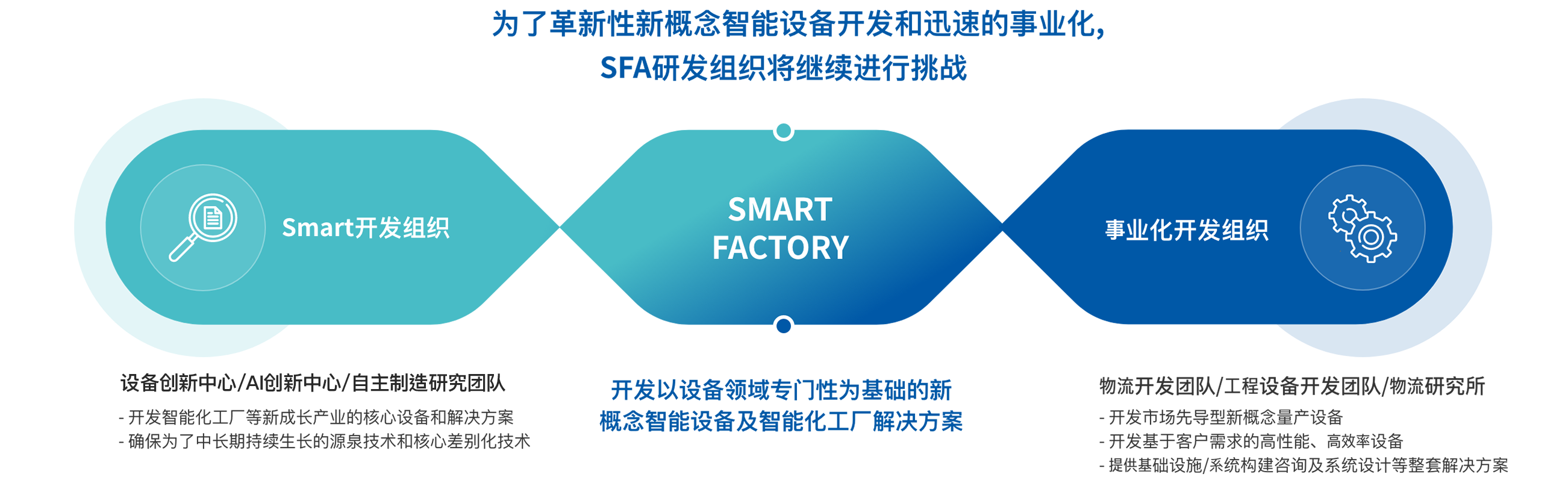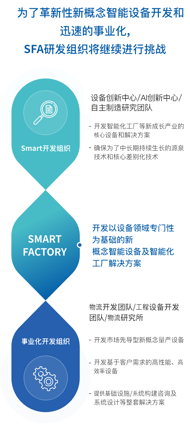 SFA拥有设备行业规模最大的设备研发团队。我们将深度融合行业顶尖领域知识及智能工厂解决方案,集中于开发新型设备及积极拓展新兴业务领域。